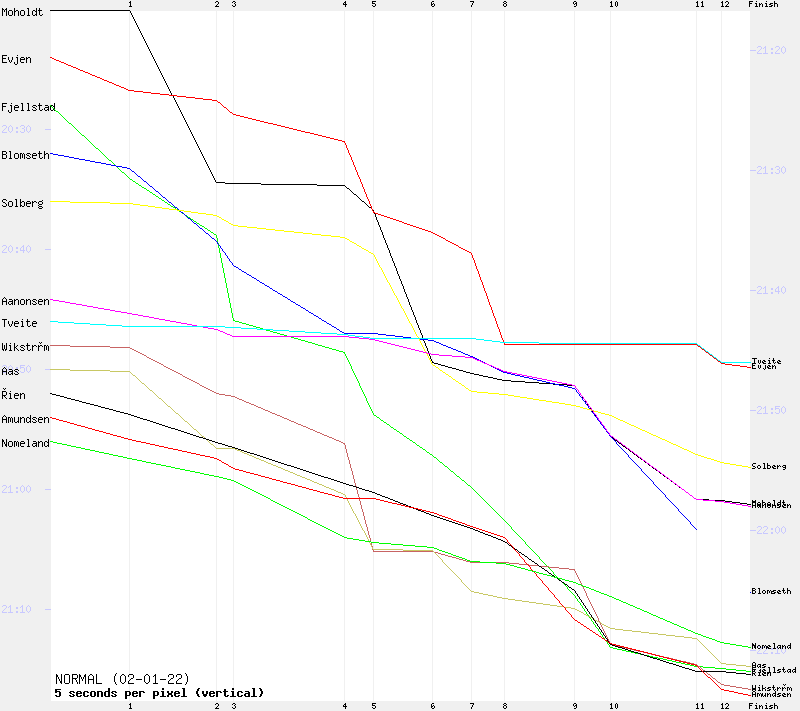 | 5 | 79:49 | Dag Amundsen | 8:18-9 | 16:51-5 | 19:04-5 | 30:31-4 | 32:57-4 | 38:53-3 | 43:12-3 | 46:46-3 | 59:16-5 | 64:09-5 | 72:58-4 | 76:58-5 | 79:49-5 | ||