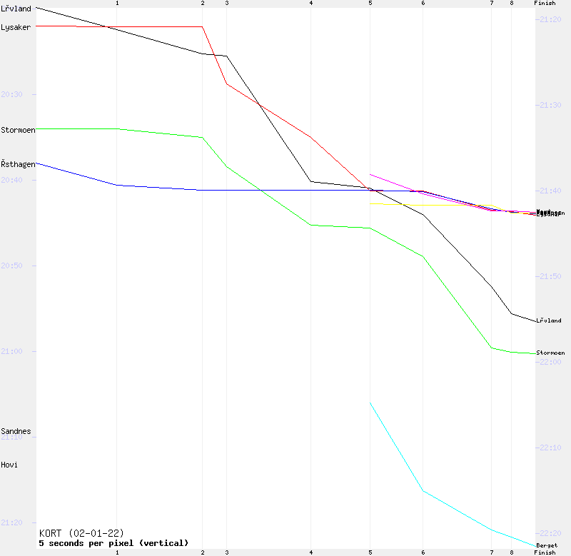 | 8 | 82:29 | Bj�rn H�vard Evjen | 9:11-10 | 17:01-6 | 19:35-8 | 30:51-5 | 39:07-7 | 45:32-7 | 50:30-7 | 60:44-9 | 66:23-9 | 69:20-8 | 76:18-8 | 79:50-8 | 82:29-8 | ||