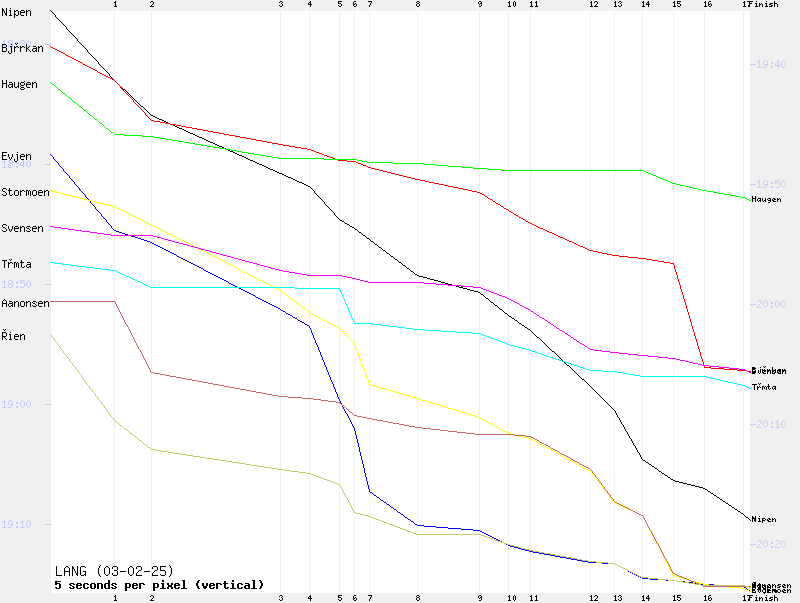 Resultat klasse H17 (Løype LANG) - Løpsutviklingsgraf
